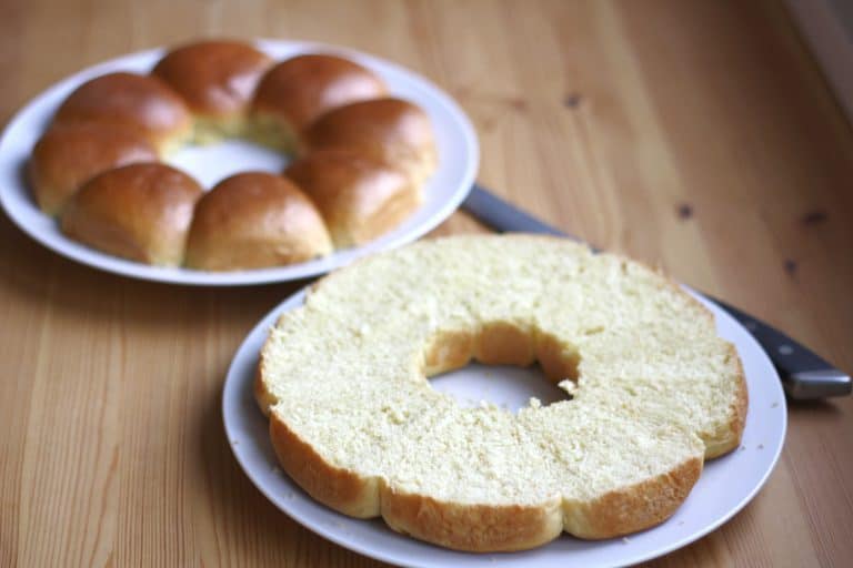 Pokud chcete mít věnec opravdu krásný, zapíchněte před rozříznutím do jednoho z bochánků 2 párátka – jedno do horní poloviny nad řezem a druhé do spodní poloviny pod řezem. Po naplnění tak snadno vrátíte horní polovinu věnce na své místo a bochánky vám budou sedět správně na sobě. Ani sebelepší kuchař je totiž nikdy nemá všechny stejně velké.