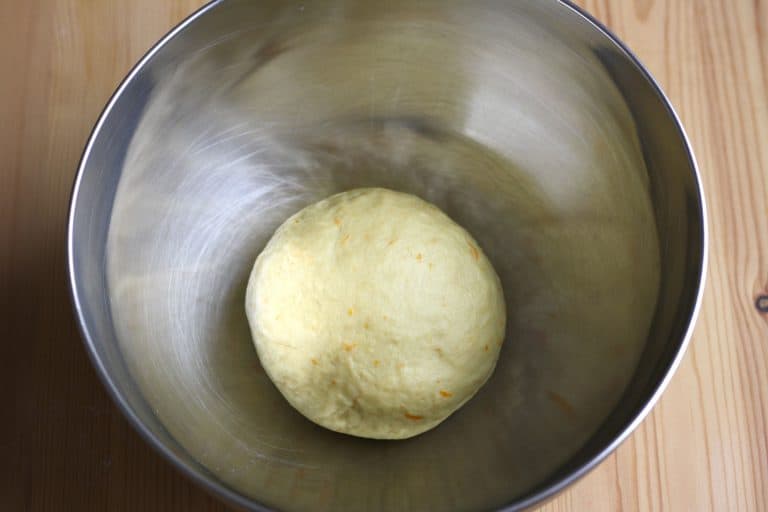 Těsto přikryjeme utěrkou a necháme kynout na teplém místě asi dvě hodiny. Doba kynutí se opět může lišit podle teploty. Správně nakynuté těsto zdvojnásobí svůj objem a při zatlačení prstem na povrch těsta se udělá důlek, který zase rychle zmizí.