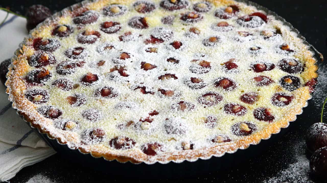 Clafouti třešňový koláč chutná výborně teplý i studený a pokud ho chcete ještě slavnostnější, jemně ho před servírováním pocukrujte a přidejte navrch porci čerstvě ušlehané smetany.