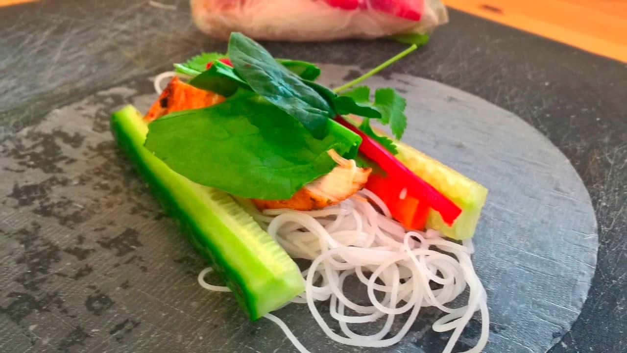 - Pokud vynecháte část o přípravě kuřecího masa, můžete si závitky udělat veganské. Zelenina, bylinky, rýžové nudle a rovnou zabalit.