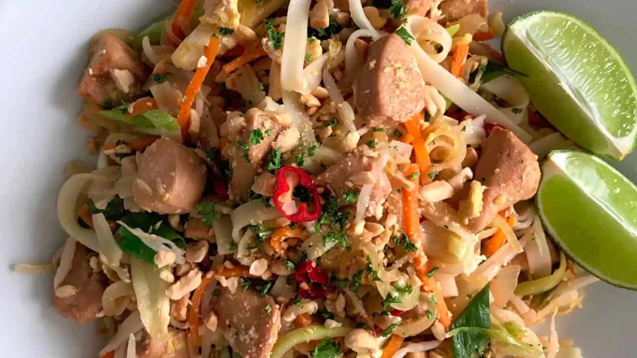 Smažené thajské nudle Pad Thai s kuřecím masem