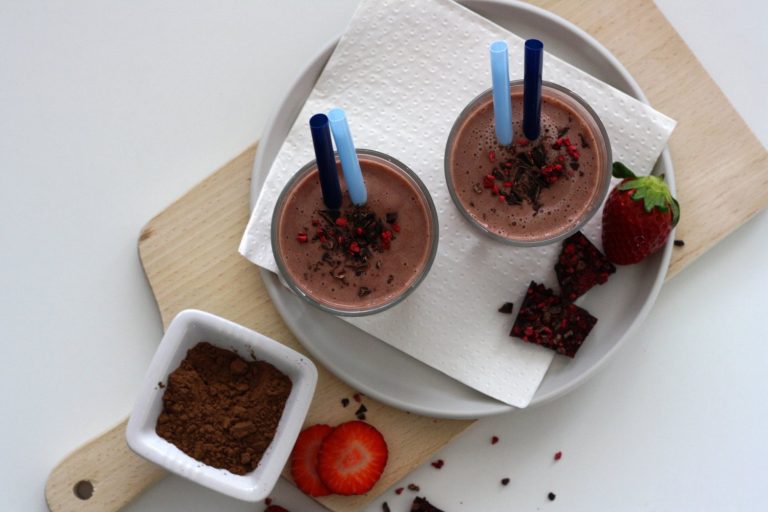 Milujete čokoládové nápoje, ale trápí vás složení plné cukru, glukózo-fruktózového sirupu, nekvalitních tuků, barviv a konzervantů? Vychutnejte si místo něj smoothie se zralými banány, čerstvými jahodami a kakaem. Když navíc použijete raw organické nepražené kakao, vytvoříte nejen chutné čokoládové smoothie, ale zároveň i nápoj nabitý antioxidanty a zdraví prospěšnými látkami, takže místo výčitek mlsáte zdravě. Raw kakaový prášek z nepražených kakaových bobů je totiž superpotravina a skvělý způsob, jak si užívat čokoládu a nejíst blbě.