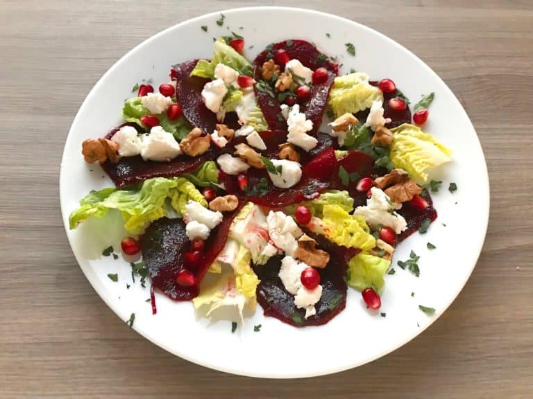 Řepné carpaccio je skvělá vitaminová bomba na zimu. V době, kdy není dostatek čerstvé sezónní zeleniny, je kořenová zelenina skvělou volbou. Řepu můžete předem do měkka uvařit, nebo také upéct v troubě. Marinované plátky lze jednoduše uchovat v ledničce do druhého dne, takže můžete pokrm přichystat i dopředu a pak už ho jen poskládat na talíře.