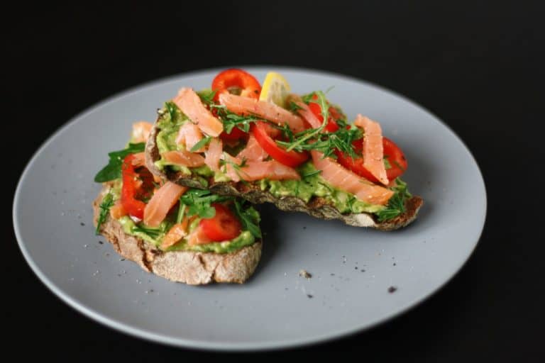 Chlebíček s avokádovým guacamole, uzeným lososem a koprem