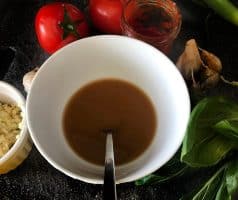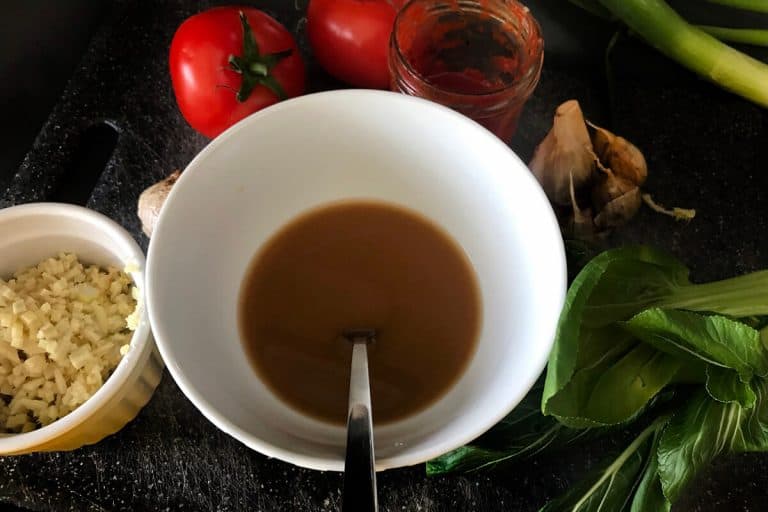 Do marinády používáme veganskou “rybí” omáčku. Pokud ji neseženete ve svém oblíbeném asijském obchodě, nemusíte ji nahrazovat sójovou omáčkou, jak to často vegani a vegetariáni dělají. Čistě rostlinou “rybí” omáčku si můžete jednoduše uvařit doma v hrnci (viz tip) z celkem dostupných ingrediencí (nejčastěji jde o kombinaci mořských řas, sóji, ananasu, soli, česneku a případně i chilli papriček). Ale pokud nejste na rostlinné stravě, klidně použijte tu klasickou.